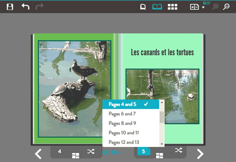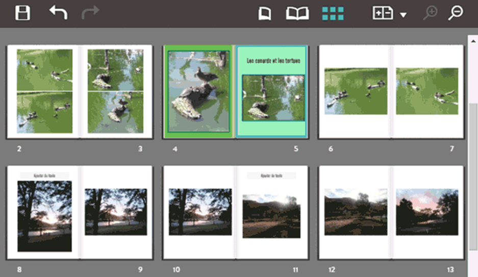 Accéder directement à une page ou à la première ou quatrième de couverture d'un livre photo